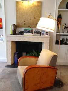 We inherited a lovely renovation from a previous owner who had hired France's Jacques Grange to renovate this apartment. For our client it was a perfect fit to continue with the style by buying French 1930's moderne antiques. We combine some of our clients existing mid century furniture with french moderne, Jacques Adnet and Christophe for example.
