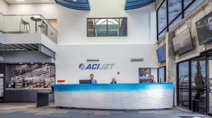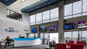 Aerodynamics, airports, aviators, airplanes, jets, all things Aviation are what make this project globally gorgeous. John & Greggâs favorite design detail for ACI jet Santa Anna is the backdrop Photographic Mural printed on aluminum panels.